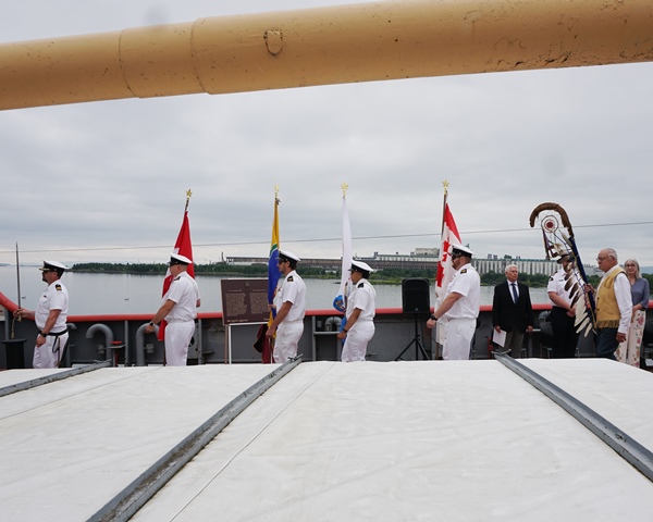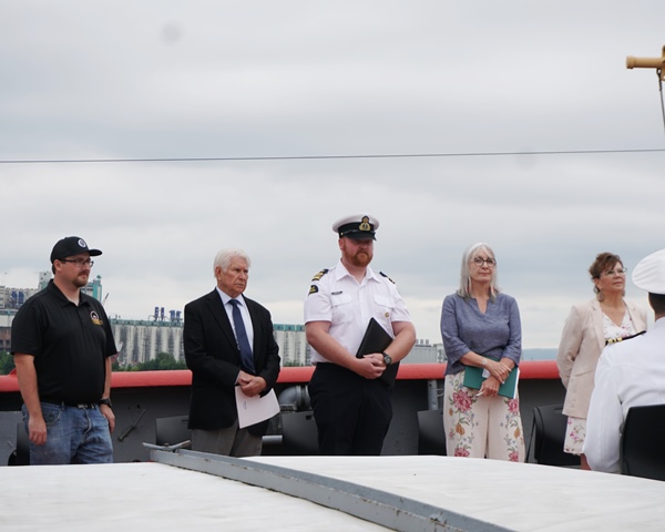 Attendance for the dedication ceremony was exceptional. Dignitaries were seated on Alexander Henry’s deck and a large crowd gathered alongside, included members from the local Canadian Coast Guard Base, Canadian Naval Reserve, local Sea and Navy League Cadets and many supporters of the Museum.
