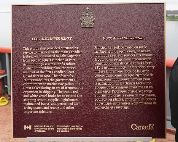 On 20 July 2024, I had the privilege of attending the ceremony at the museum ship CCGS Alexander Henry designating this former Canadian Coast Guard icebreaker as a National Historic Site by Parks Canada in Thunder Bay, ON.